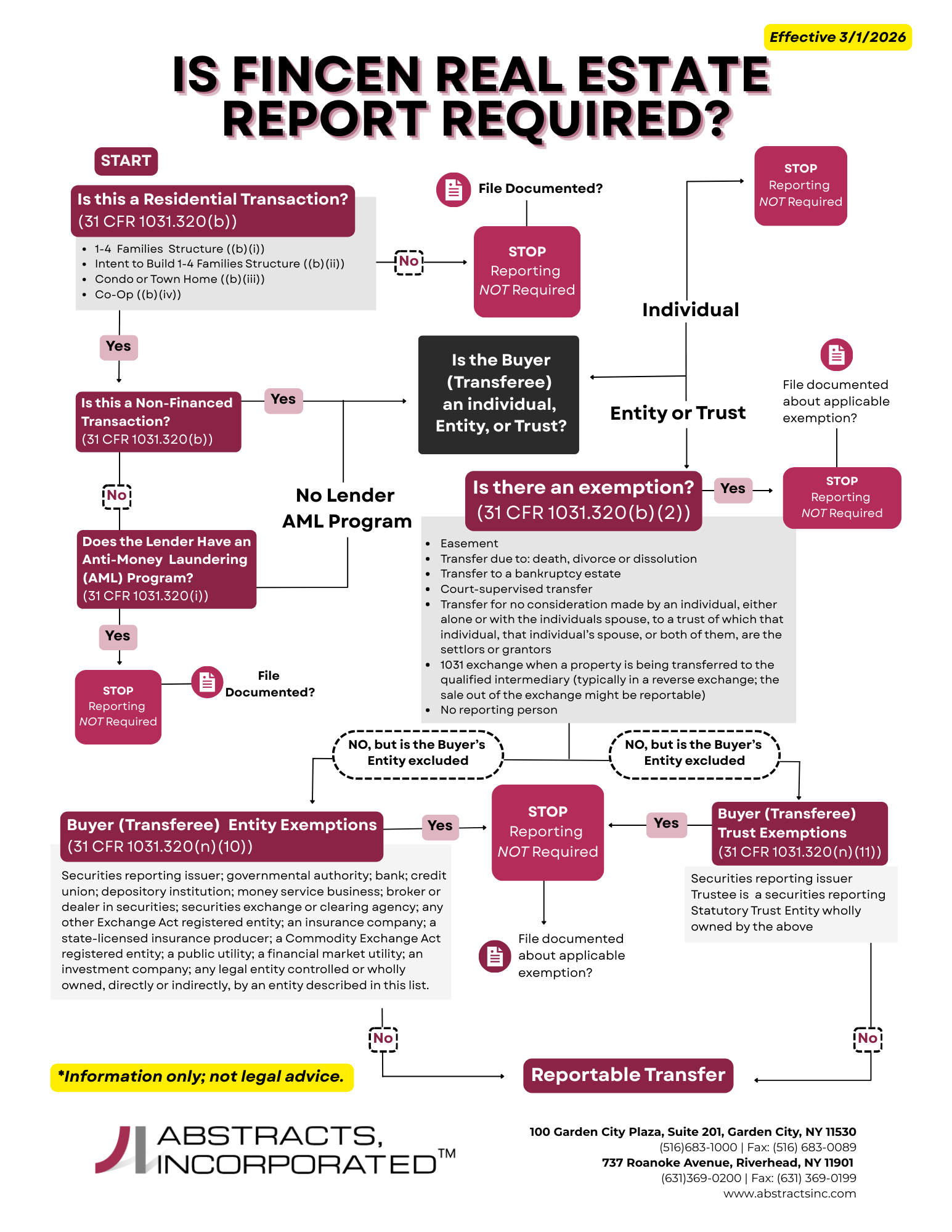 With upcoming changes happening in March 2026 to FinCEN, we wanted to share this easy step-by-step flyer providing a quick guide to determine reporting obligations based on transaction type, buyer entity and exemptions.